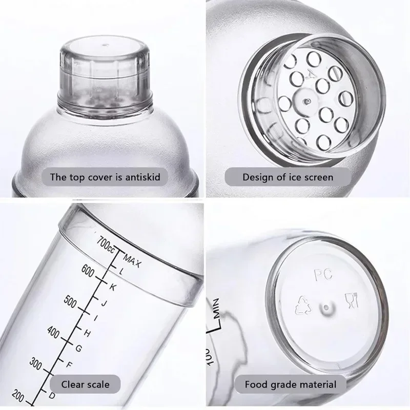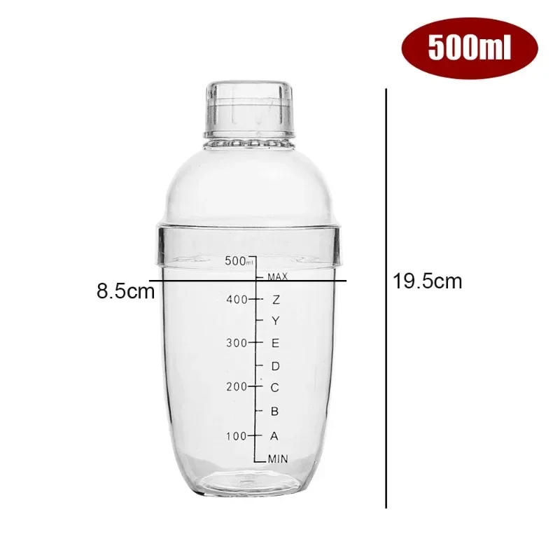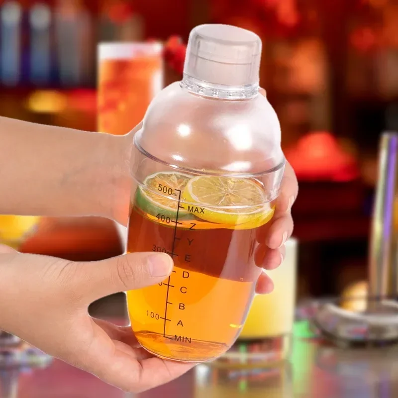 500/700ML Plastic Cocktail Shaker Transparent Shake Cups with Scale Wine Drink Mixer Shake Bottles Portable Bar Kitchen Utensils